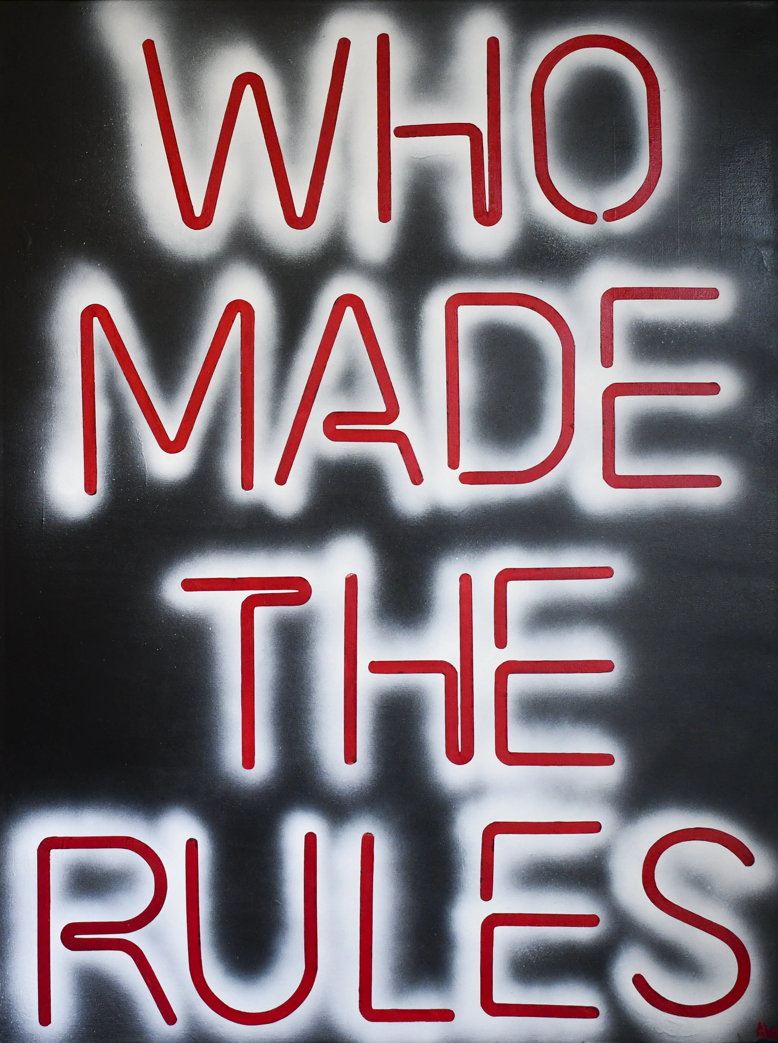Who Made the Rules, oil on canvas, 40” x 30”, 2021